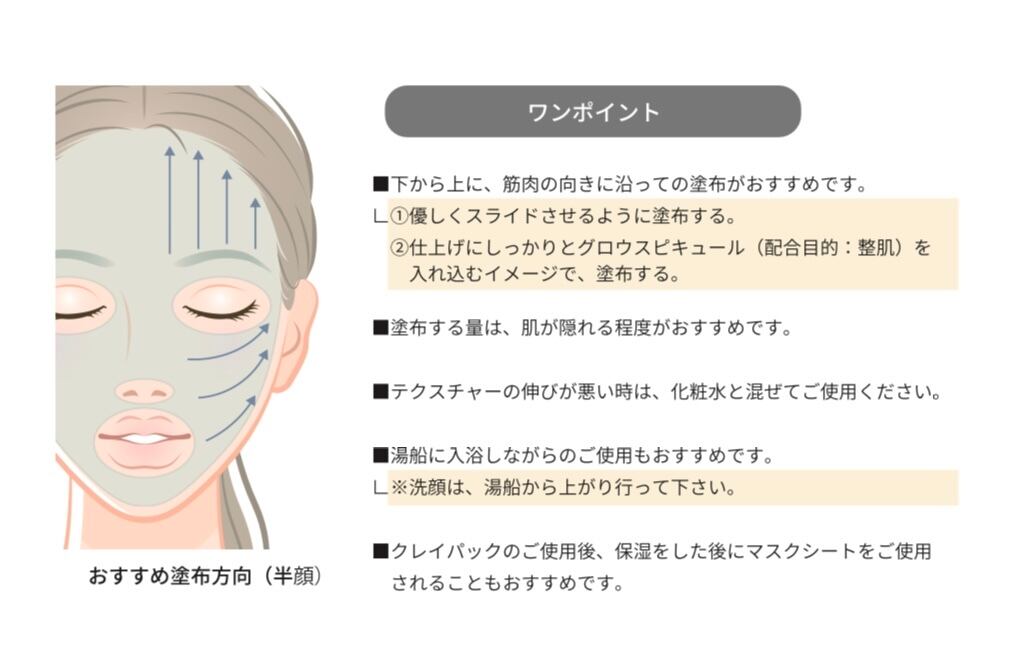 豊富なミネラル含有の、海底や地底から採れるクレイ(泥)を使用したパックです。